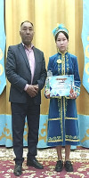 Құрманғазының «Балқаймақ», Қазанғаптың «Құс қайтару», халық күйі «Жайма қоңыр», Дәулеткерейдің «Жеңгем сүйер», Сейтектің «Сексен ер», Әубәкіровтың «Өрлеу» мен М.Тналинның «Наурыз» сияқты жеті күйін бірінен-бірі ілесе отырып, тартысып ойнап, жеті күйден де сүрінбей 12-14 жас аралығындағы 16 қатысушының арасынан озық шығып, 1 орынды жеңіп алды.