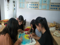 «Шеберлер» («қолөнерші») үйірмесіндегі сабақтарда балалар жүн илеумен, тоқыма үлгілеумен, сондай-ақ тоқумен айналысады.